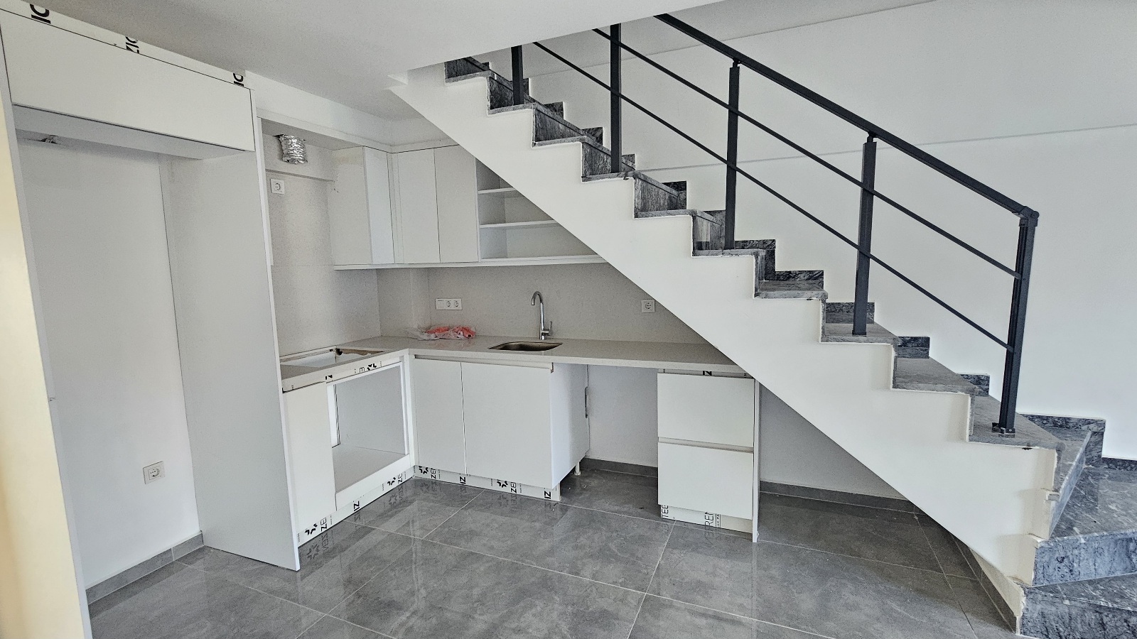 Açık mutfak salon,yatak odası, banyo tuvalet,