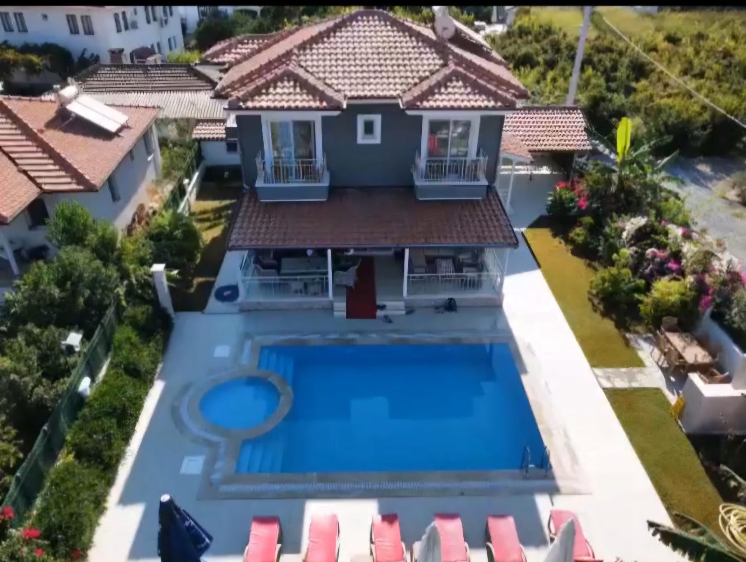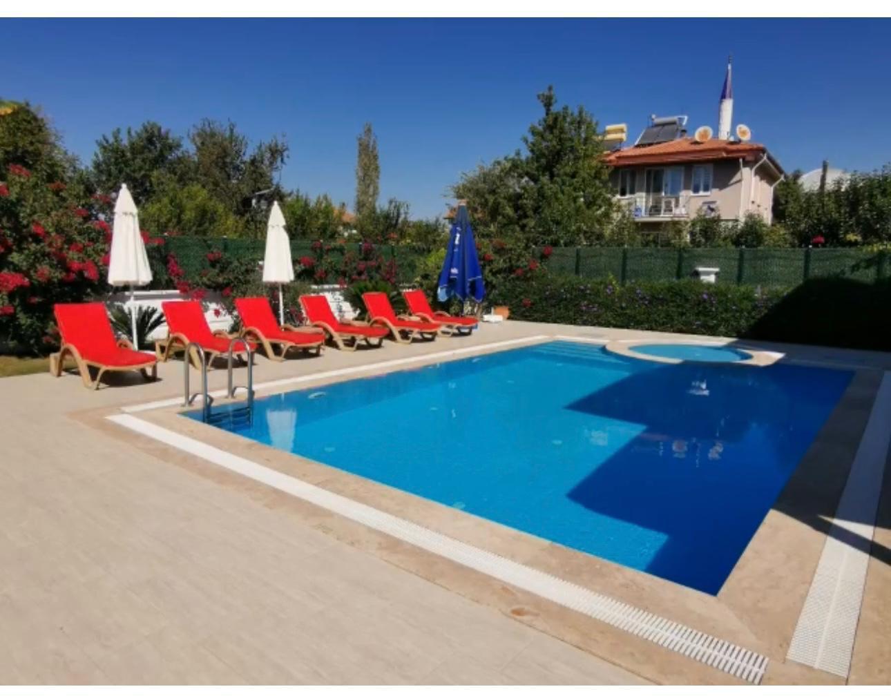 Dalyan’ın huzurlu ve doğayla iç içe atmosferinde yer alan bu özel villa, hem konforlu bir yaşam hem de yüksek kira getirisi arayanlar için ideal bir fırsat sunuyor.500 m² arsa içerisinde konumlanan, 150 m² kullanım alanına sahip 4+1 villa; geniş ve ferah yaşam alanlarıyla öne çıkıyor.Zemin katta; açık mutfaklı geniş salon, banyolu 1 yatak odası ve çamaşır odası bulunmaktadır. Üst katta ise her biri konforlu kullanım sunan 3 adet banyolu yatak odası yer almakta olup, 2 yatak odası havuz ve doğa manzaralı balkona açılmaktadır.Villanın dış alanı da en az iç mekan kadar keyifli bir yaşam sunar. Özel yetişkin ve çocuk yüzme havuzu, havuz başında barbekü alanı, geniş oturma alanları, şezlong bölümü ve peyzajlı bahçesi ile tam anlamıyla bir yaşam alanı oluşturulmuştur. Bahçede çeşitli ağaçlar ve çiçekler bulunmakta olup, geniş çim alanlar mevcuttur. Ayrıca üstü kapalı garaj, villa girişinde rampa ve arka bahçede depo alanı bulunmaktadır.Sakin bir bölgede yer almasına rağmen sosyal alanlara yürüyerek yaklaşık 15 dakika, araç ile ise 3-5 dakika mesafededir. Dünyaca ünlü İztuzu Plajı’na 10 km, Dalaman Havalimanı’na ise 32 km uzaklıktadır. Çevresi nar bahçeleri ile çevrili olup doğayla iç içe bir yaşam sunar.Yeni ve modern mimarisiyle dikkat çeken bu villa, krediye uygun olup hem oturum hem de sezonluk kiralama için yüksek kazanç potansiyeline sahiptir.Detaylı bilgi ve yerinde sunum için bizimle iletişime geçebilirsiniz.